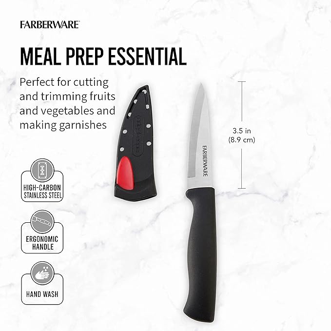 Farberware Edgekeeper 3.5-Inch Paring Knife with Self-Sharpening Blade Cover, High Carbon-Stainless Steel Kitchen Knife with Ergonomic Handle, Razor-Sharp Knife, Black