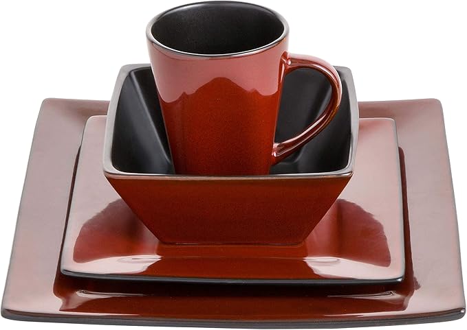 Gibson Elite Kiesling 16 Piece Dinnerware Set, Red