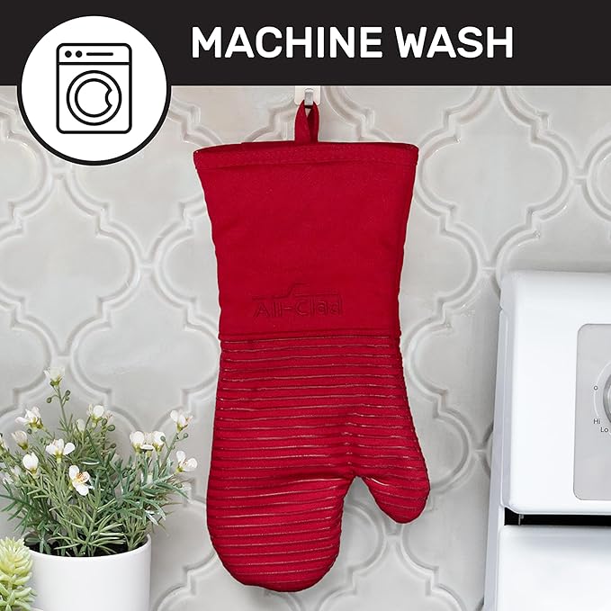 All-Clad Silicone Oven Mitts: Heat Resistant up to 500 Degrees - 100% Cotton & Silicone, 14"x7" Oven Mitt for Kitchen and Barbeque, 2-Pack, Chili