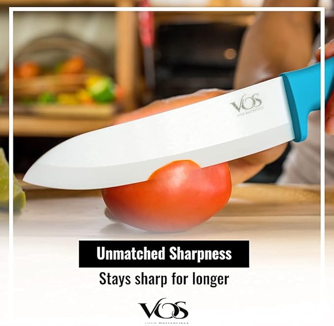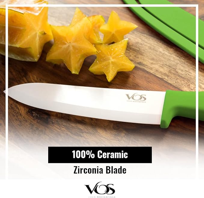 Vos Ceramic Knife Set with Peeler, Ceramic Knives Set For Kitchen, Ultra Sharp Kitchen Knife Set with Covers, 3" 4" 6" Paring, Utility & Chef Knife, Lightweight, Dishwasher safe (Multi-Color Handle)