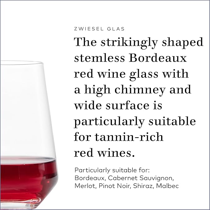 ZWIESEL GLAS Pure Stemless Bordeaux Glass (Set of 6), Red Wine Tumbler for Bordeaux, Dishwasher-Safe Machine-Made Tritan Crystal Glasses, Made in Germany (18.5 Ounce)