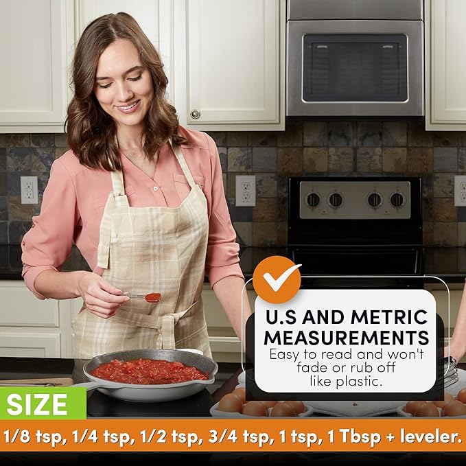 Spring Chef Stainless Steel Measuring Spoons Set of 7 with Leveler, Rectangular Metal Teaspoon & Tablespoon Measuring Spoons for Dry & Liquid Ingredients - Nesting Kitchen Gadgets For Baking & Cooking