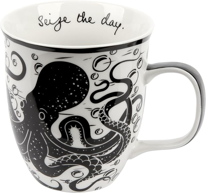 Karma Gifts 16 oz Black and White Boho Mug Octopus - Cute Coffee and Tea Mug - Ceramic Coffee Mugs for Women and Men