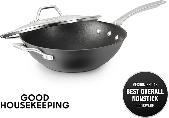 Calphalon Signature Hard-Anodized Nonstick Wok, 12", Flat-Bottom, Oven-Safe, PFOA-Free, Black
