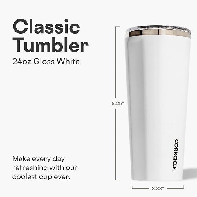 Corkcicle Classic Tumbler - Keeps Drinks Hot for 3 Hours - Triple-Insulated Stainless Steel - Cupholder Friendly - Holiday Mug Gift - Great for Gifting Warmth - 24 oz - Gloss White