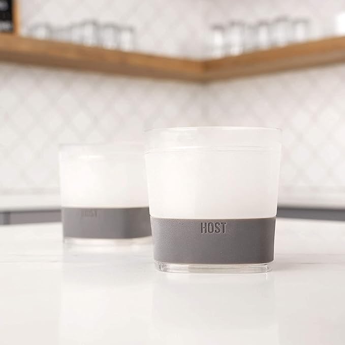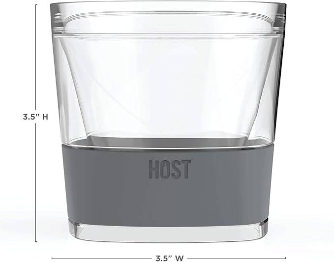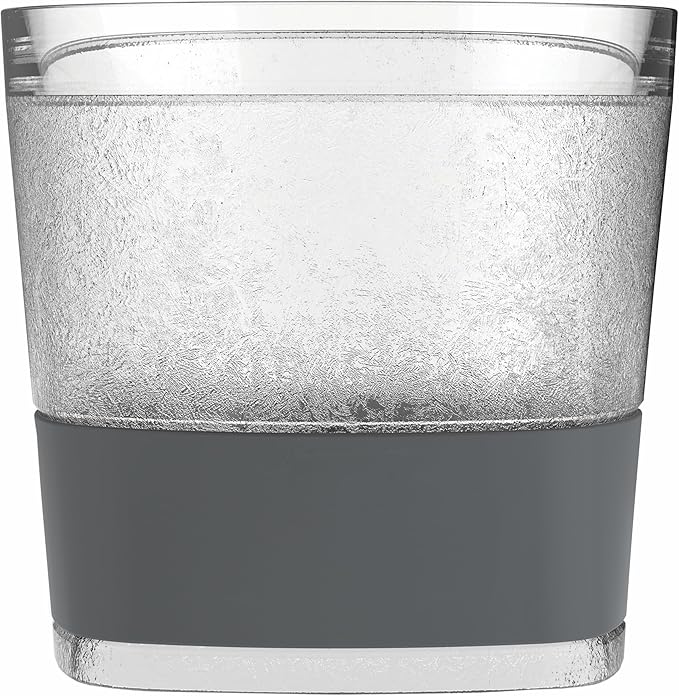 Host Whiskey Freeze Glasses, Double Old Fashioned Glasses, Chill Without Dilution for Brandy, Vodka, Gin, Rum, and Cold Brew Cocktails, Bourbon Gifts for Men, Home Bar, 9 oz, Set of 2, Grey