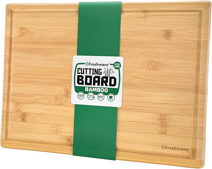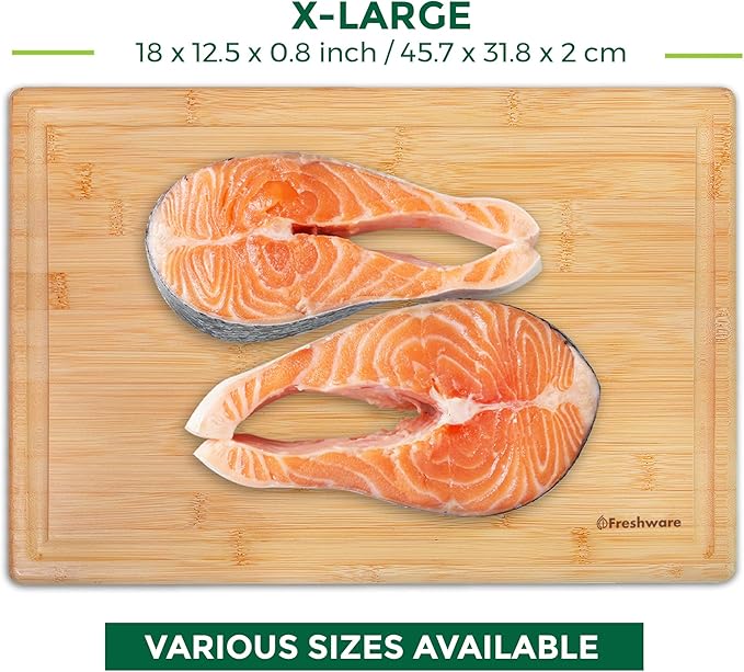 Bamboo Cutting Boards for Kitchen with Juice Groove [Extra-Large] Wood Cutting Board for Chopping Meat, Vegetables, Fruits, Cheese, Knife Friendly Serving Tray with Handles, 18 x 12.5 Inch