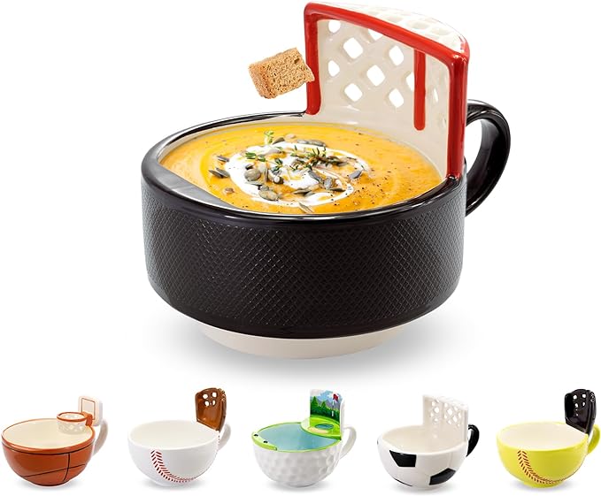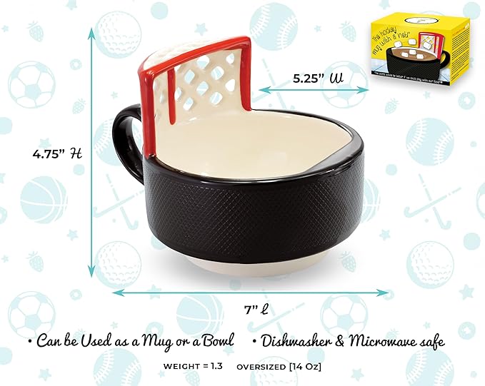 About This Big Funny Coffee Mug – Interactive ceramic hockey cereal/soup/rice bowl with a net. Fun for tossing crackers or... Read more