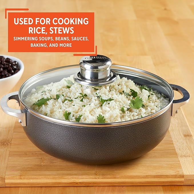 IMUSA 6.9qt Charcoal Aluminum Nonstick Caldero with Glass Lid, Black