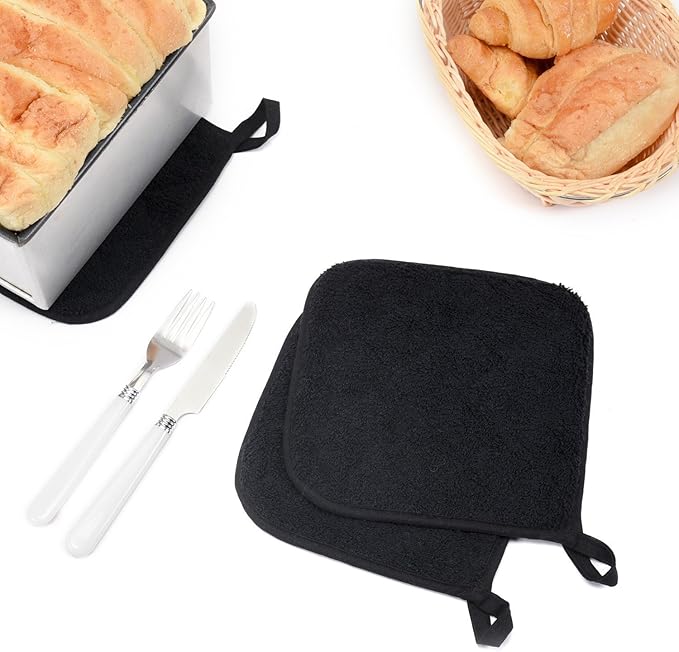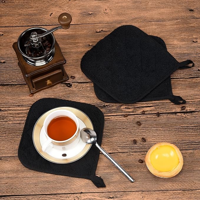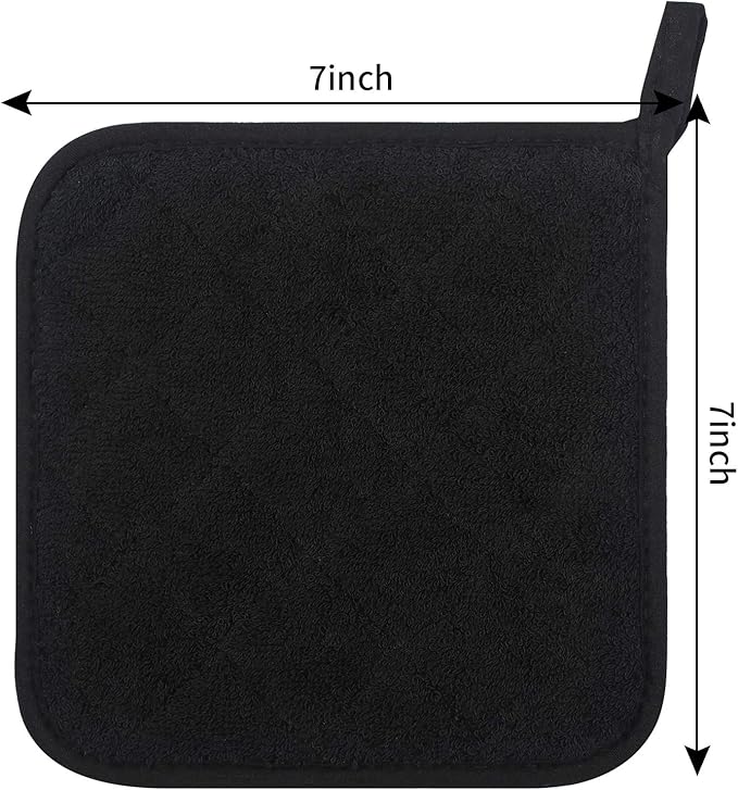 100% Cotton Kitchen Everyday Basic Terry Pot Holder Heat Resistant Coaster Potholder for Cooking and Baking Set of 5 Black
