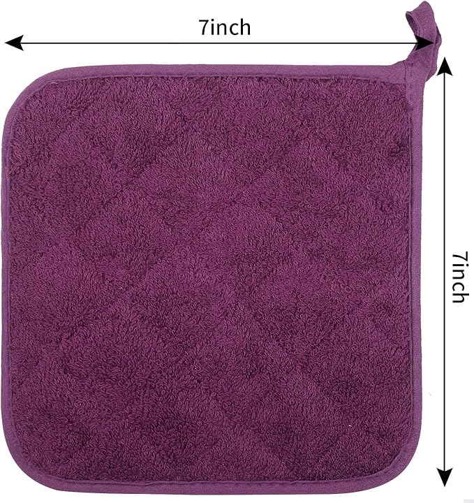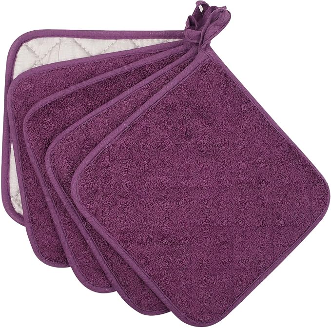 100% Cotton Kitchen Everyday Basic Terry Pot Holder Heat Resistant Coaster Potholder for Cooking and Baking Set of 5 Grape