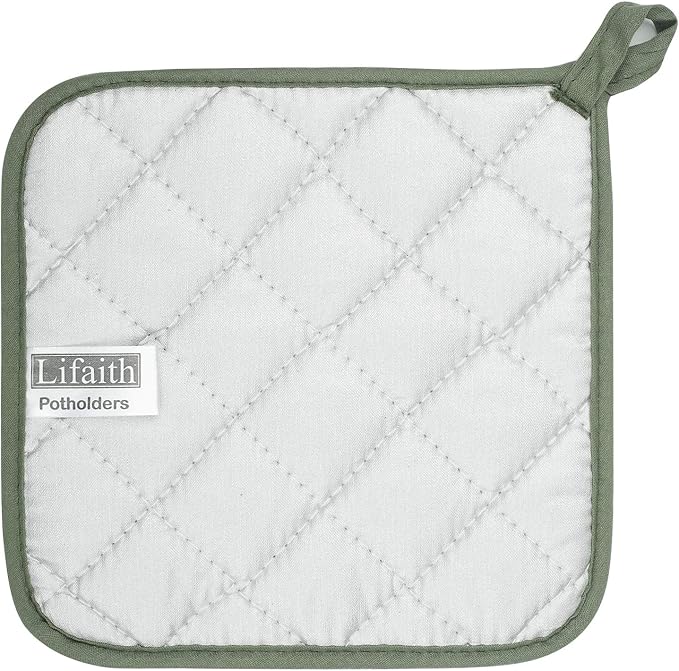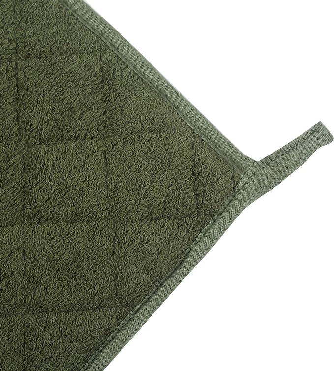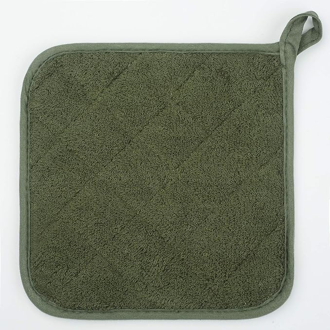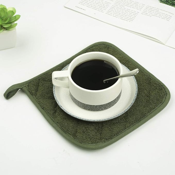 100% Cotton Kitchen Everyday Basic Terry Pot Holder Heat Resistant Coaster Potholder for Cooking and Baking Set of 5 Olive Green