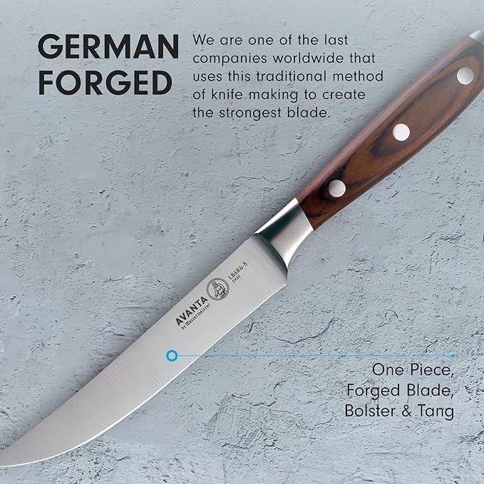 Messermeister Avanta 5” Fine Edge Steak Knife Set - German X50 Stainless Steel - Rust Resistant & Easy to Maintain - Includes 4 Steak Knives
