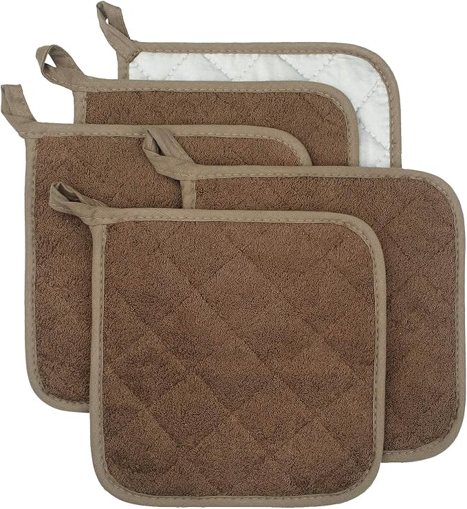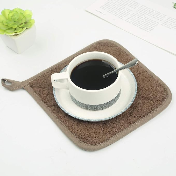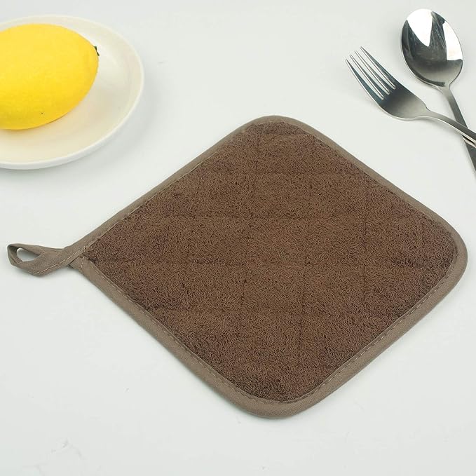 100% Cotton Kitchen Everyday Basic Terry Pot Holder Heat Resistant Coaster Potholder for Cooking and Baking Set of 5 Brown