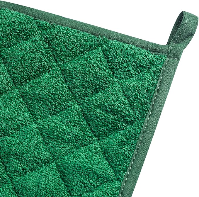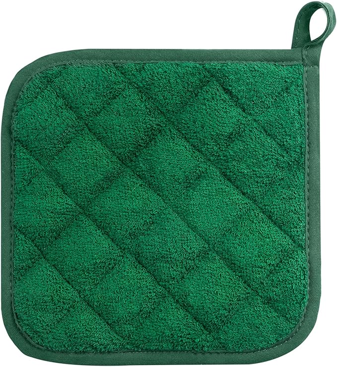 100% Cotton Kitchen Everyday Basic Terry Pot Holder Heat Resistant Coaster Potholder for Cooking and Baking Set of 5 Dark Green
