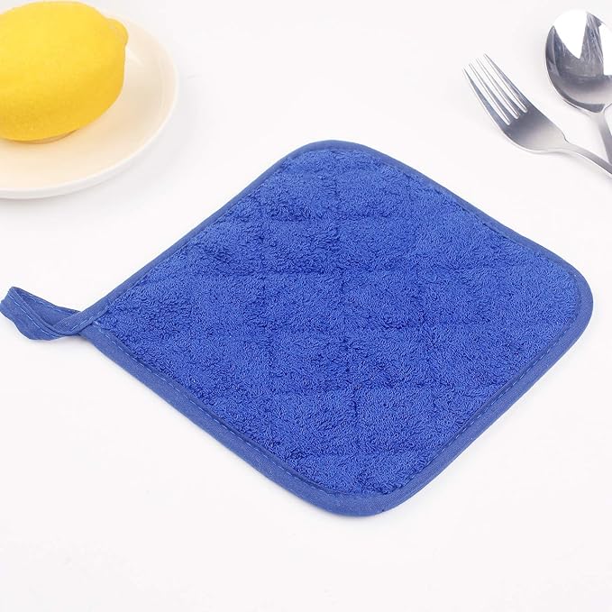 100% Cotton Kitchen Everyday Basic Terry Pot Holder Heat Resistant Coaster Potholder for Cooking and Baking Set of 5 Navy Blue