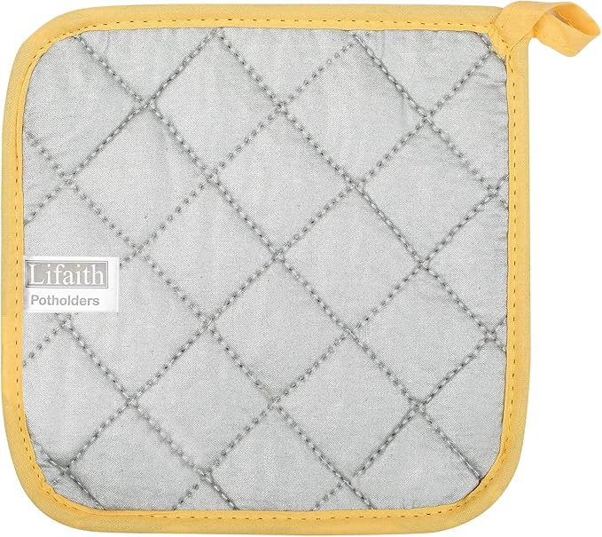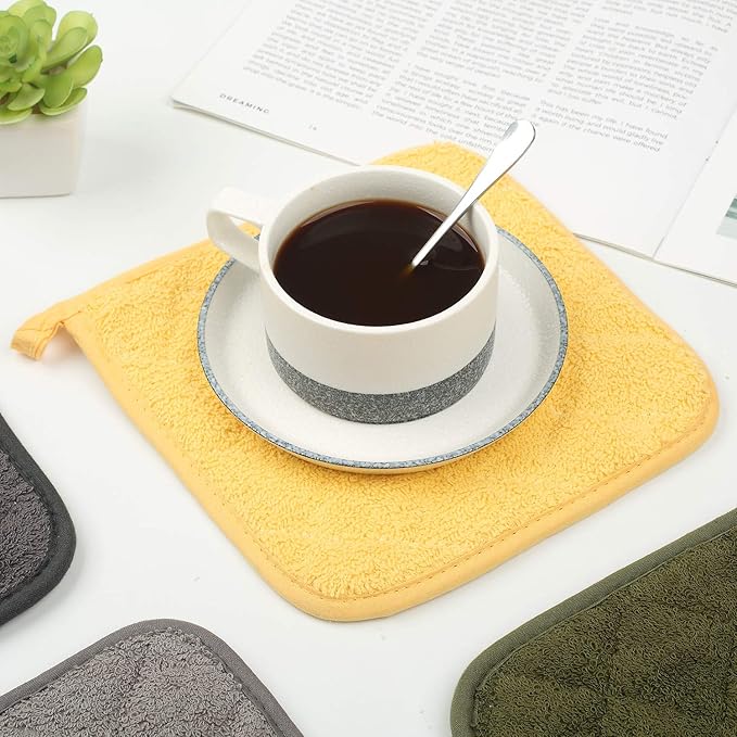 100% Cotton Kitchen Everyday Basic Terry Pot Holder Heat Resistant Coaster Potholder for Cooking and Baking Set of 5 Yellow
