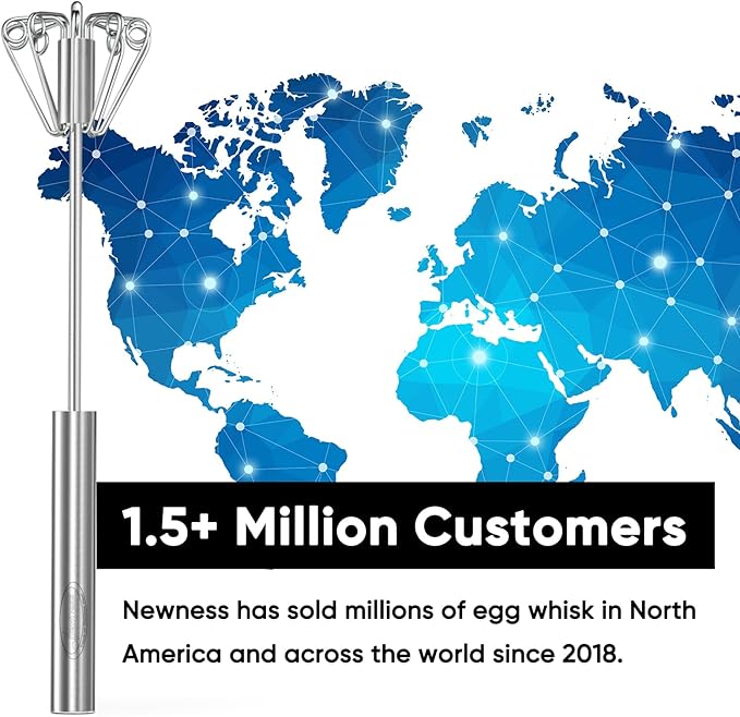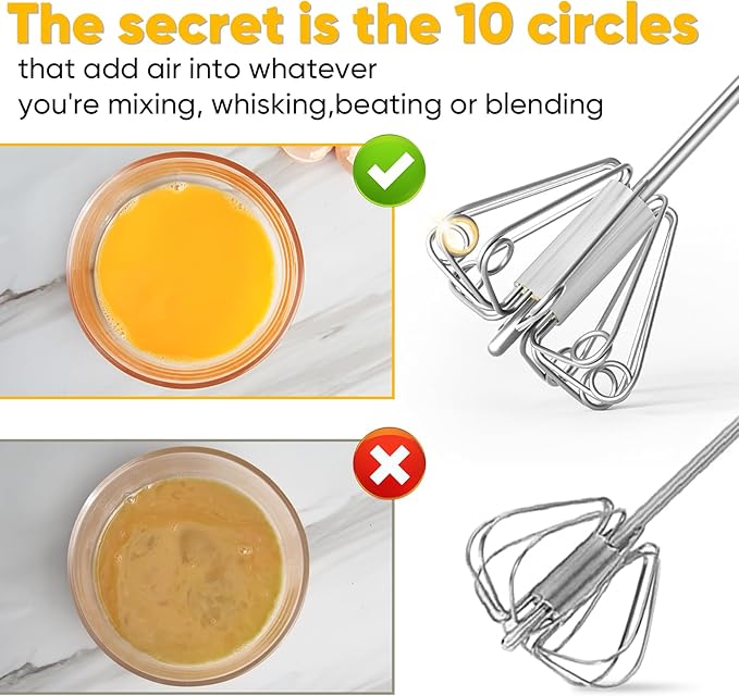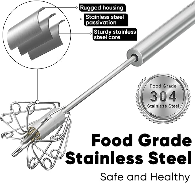Newness Whizzy Whisk, Stainless Steel Semi Automatic Blender for Home -Versatile Tool for Egg Beater, Milk Frother, Hand Push Whisk - Kitchen Utensil for Blending, Whisking, Beating & Stirring