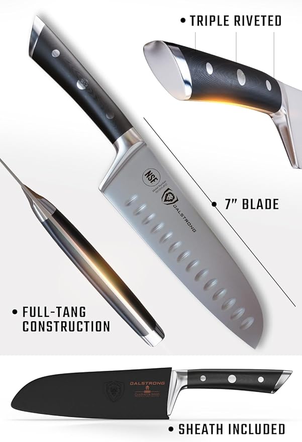 Dalstrong Santoku Knife - 7 inch - Gladiator Series ELITE - High Carbon German Steel - Sheath Included - Razor Sharp Kitchen Knife - Asian Vegetable Knife - NSF Certified