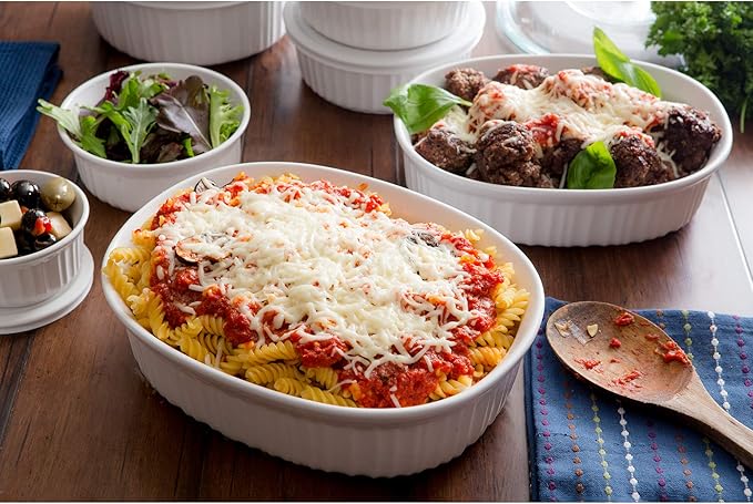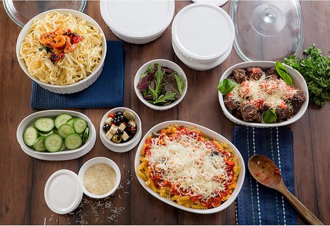 CorningWare French White 20-Pc Ceramic Bakeware Set with Lids Chip and Crack Resistant Stoneware Baking Supplies, Microwave, Dishwasher, Oven, Freezer and Fridge Safe