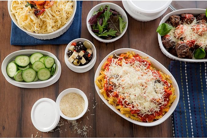 About This 20-PIECE: Includes (1) 2.5-qt, (1) 1.5-qt, (1) 16-oz, (1) 15-oz oval containers, (1) 2.5-qt, (1) 1.5-qt, (2) 24-oz,... Read more
