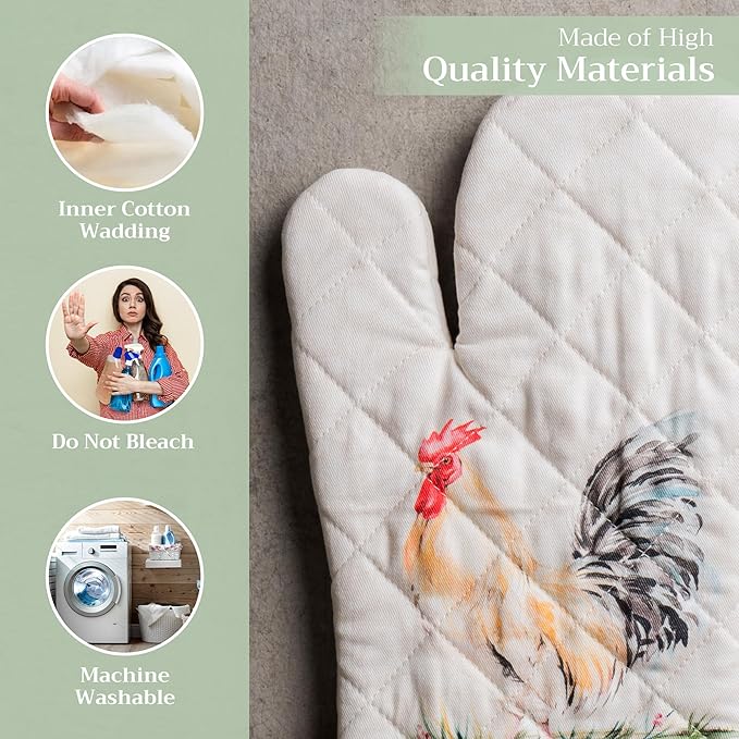 Maison d'Hermine Oven Gloves 100% Cotton Oven Mitt 7" x 13" with Loop Heat Resistant, BBQ, Cooking Gloves, Baking, Grilling, Kitchen, Handling Hot Pans Spring/Summer (Pack of 1, Campagne)