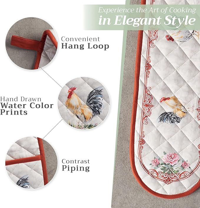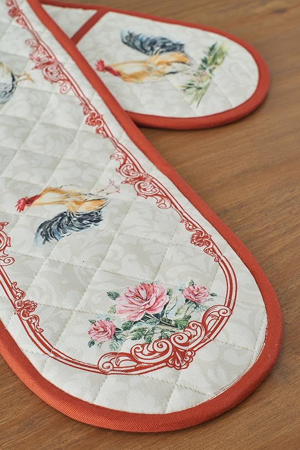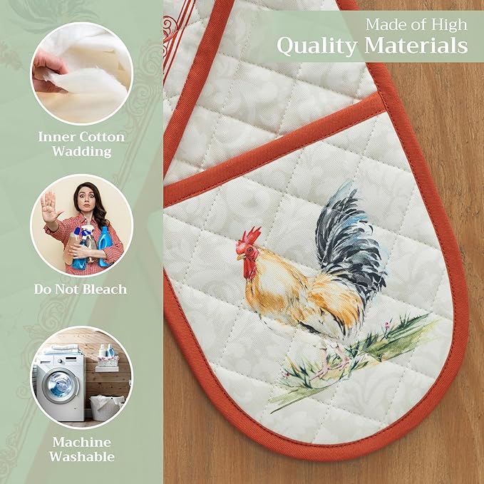 Maison d' Hermine Double Oven Mitts 100% Cotton 7"x35" Double Oven Mitt Heat Resistant BBQ Cooking Gloves with Loop, Baking, Grilling, Home, Kitchen, Handling Hot Pans Spring Summer (Campagne)