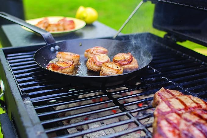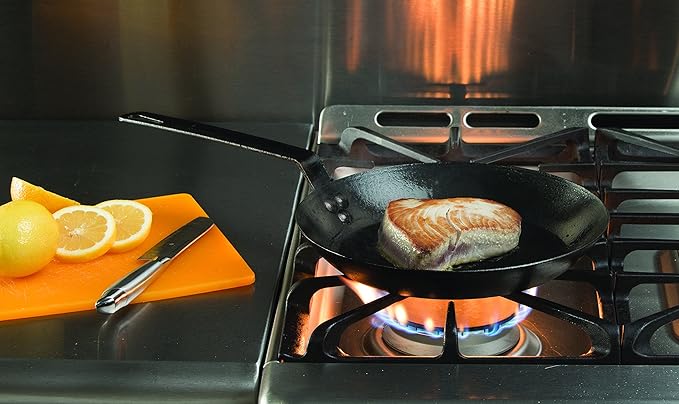 About This Heavy-duty 12 gauge carbon steel with steel riveted handles Seasoned for a natural, easy-release finish that improves with... Read more