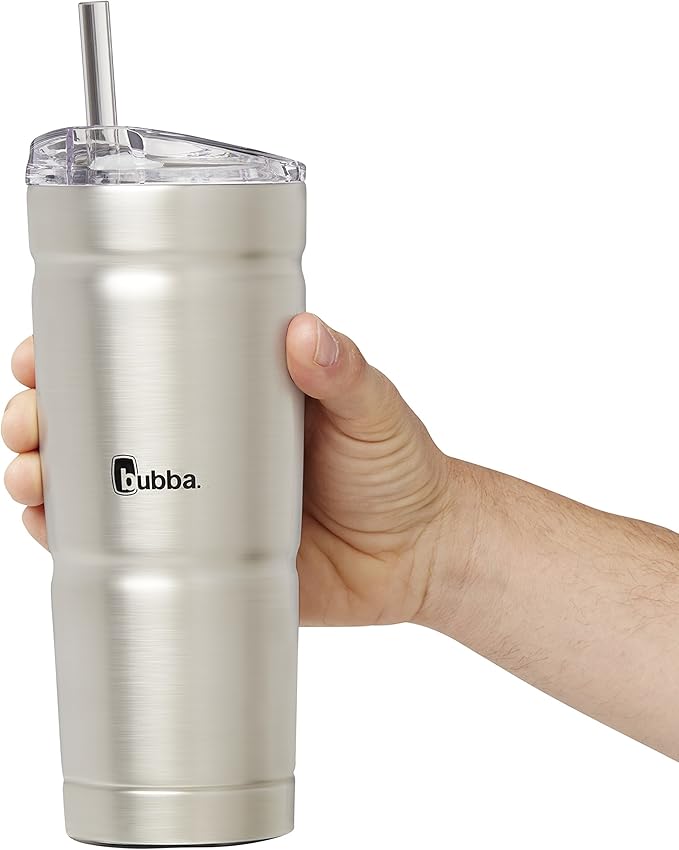 Bubba Envy Stainless Steel Tumbler with Straw, Stainless Steel with Clear Lid, 24oz