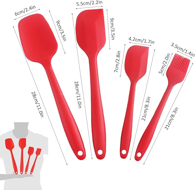Silicone Spatula Set of 6, Rubber Spatula Set Heat Resistant and Stainless Steel Core Spatulas for Nonstick Cookware, Cooking Spatula Kitchen Utensils for Baking Mixing Small and Large Red Spatulas