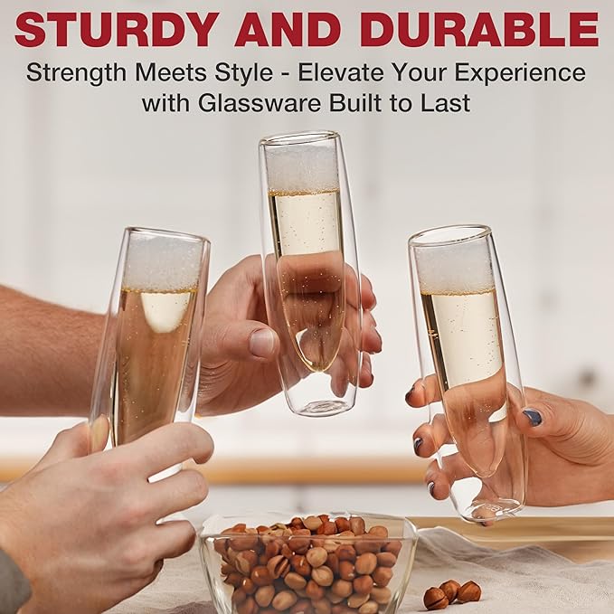 About This Elegant Double Wall Insulation: These stemless double wall champagne flutes maintain drink temperature and prevent condensation. Durable and... Read more