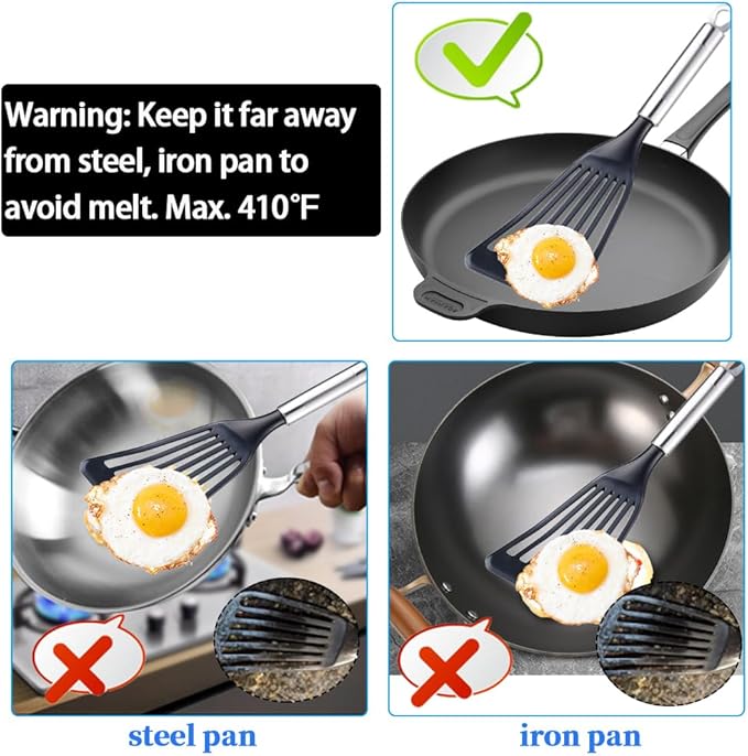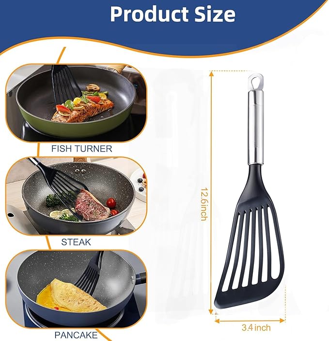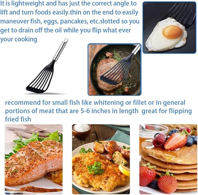 KSENDALO Thin Kitchen Spatula Turner for Egg,Fish, Slotted Flexible Plastic Spatula for Nonstick Cookware, Idea Kitchen Utensil for Egg, Bacon, Fish, Pancakes