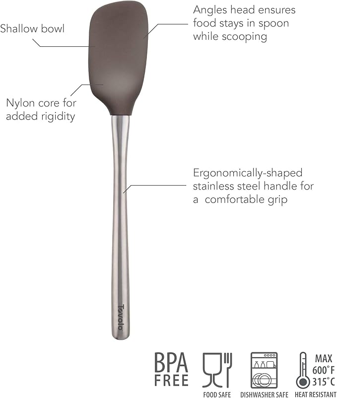 Tovolo Flex-Core Stainless Steel Handled Spoonula Spatula Spoon, Ergonomic Grip, Dishwasher Safe, Charcoal