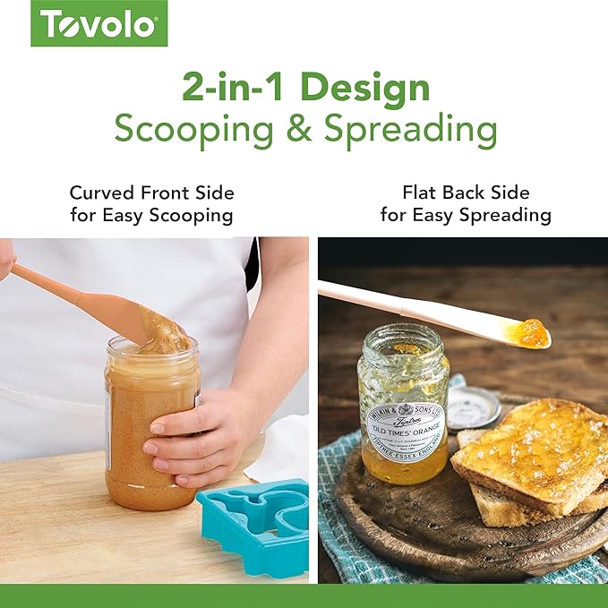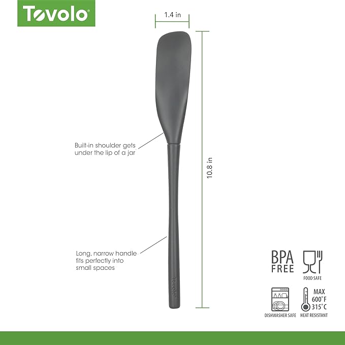 Tovolo Flex-Core Silicone Spatula Jar Scraper - Long-Handled Rubber Spatula with Angled Head for Scooping & Scraping - Heat-Resistant Spatulas for Kitchen Use, Dishwasher Safe & BPA-Free