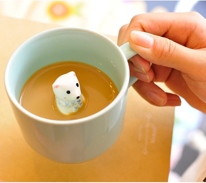 ZaH 3D Mug Animal Inside Cup Cartoon Ceramics Figurine Teacup Christmas Birthday Gift for Boys Girls Kids Women Men Coffee Mug (8 oz Rabbit)