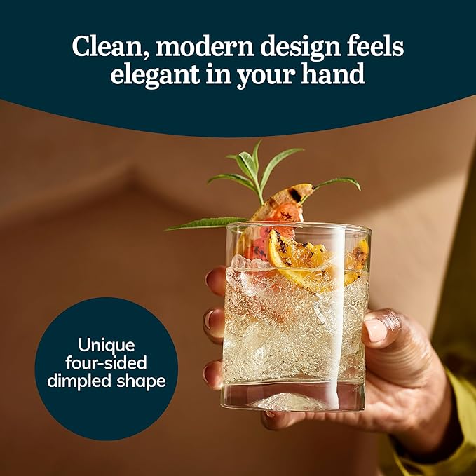 About This [Comfortable Grip: Unique four-sided dimpled design of this drinkware glasses set fits perfectly in hand, making it easy... Read more