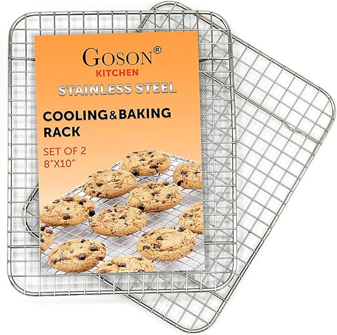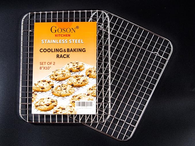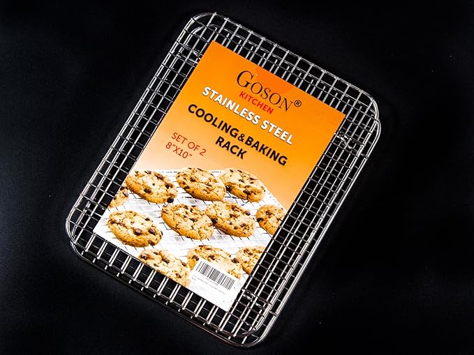 Goson Heavy Duty Stainless Stain Bakeware, Baking, Cooling, Oven Roasting, Broiler Rack, 8in by 10in, Cross Wire, Pack of 2, Compatible with Various Baking Sheets Oven Pans