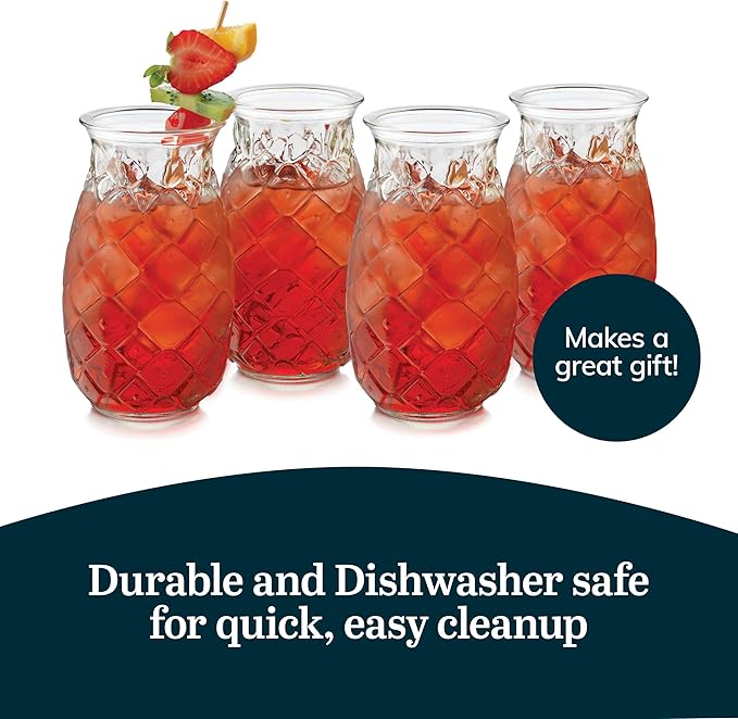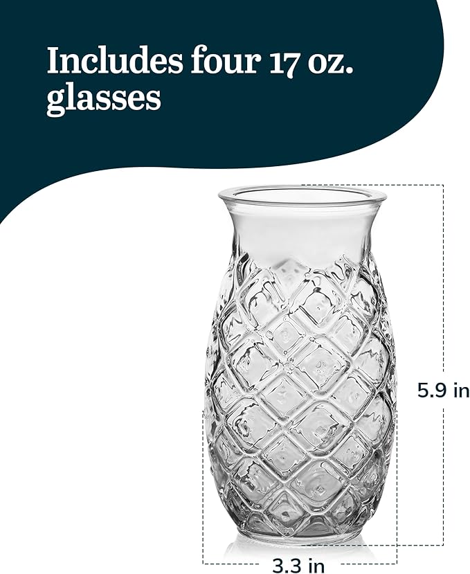 Libbey Tiki Pineapple Glasses Set, Tiki Glasses for Cocktails, Ideal Tiki Bar Set of 4