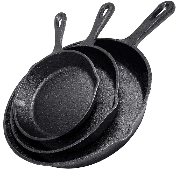 Cast Iron Skillet 3-Piece Set - Heavy-Duty Professional Restaurant Chef Quality Pre-Seasoned Pan Cookware Set - 10", 8", 6" Pans - For Frying, Saute, Cooking, Pizza & More,Black