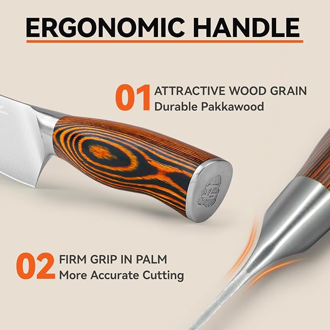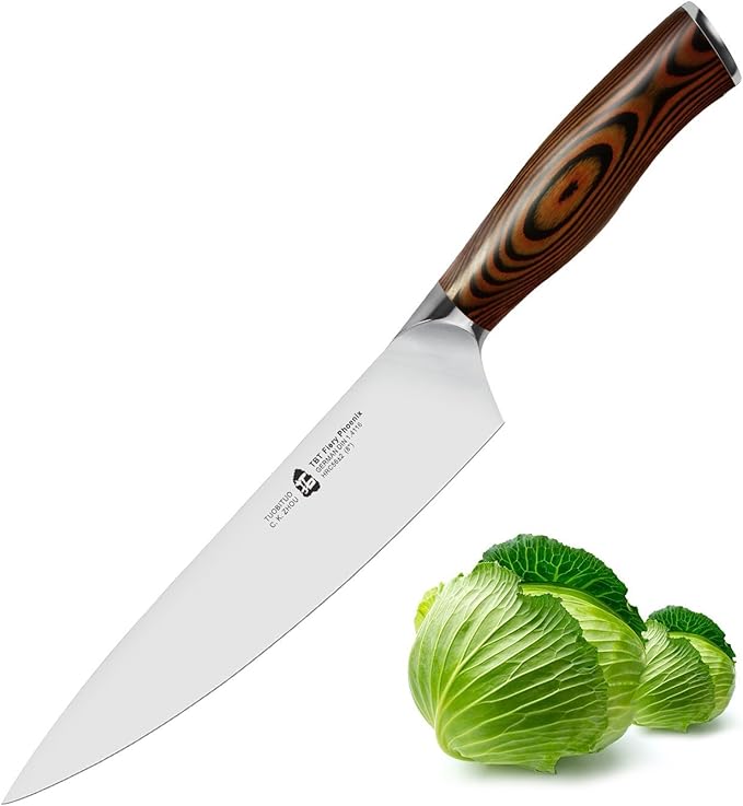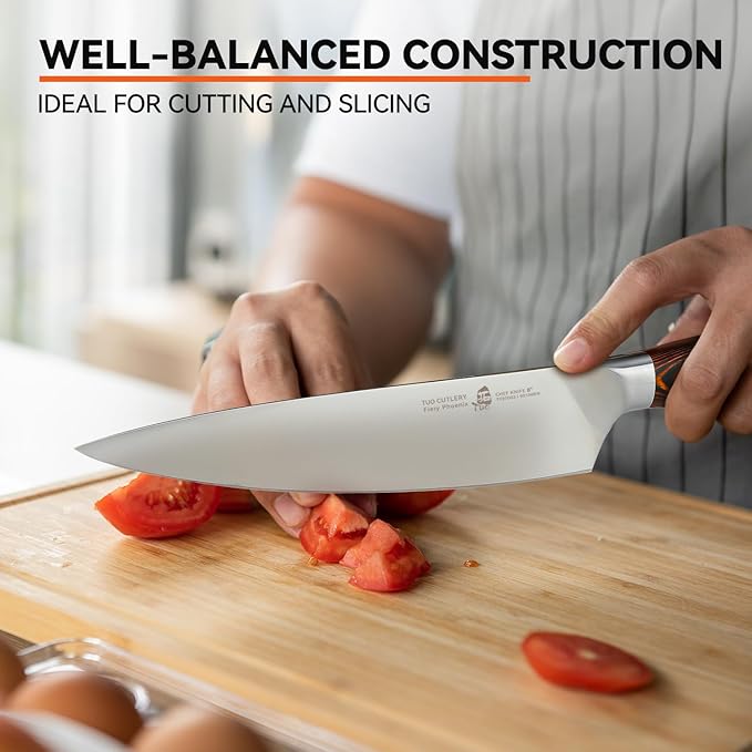 TUO Chef Knife, 8 inch Sharp Kitchen Knife with Pakkawood Handle, High Carbon Steel, Professional for Chopping & Dicing, Gift Box - Fiery Phoenix Series