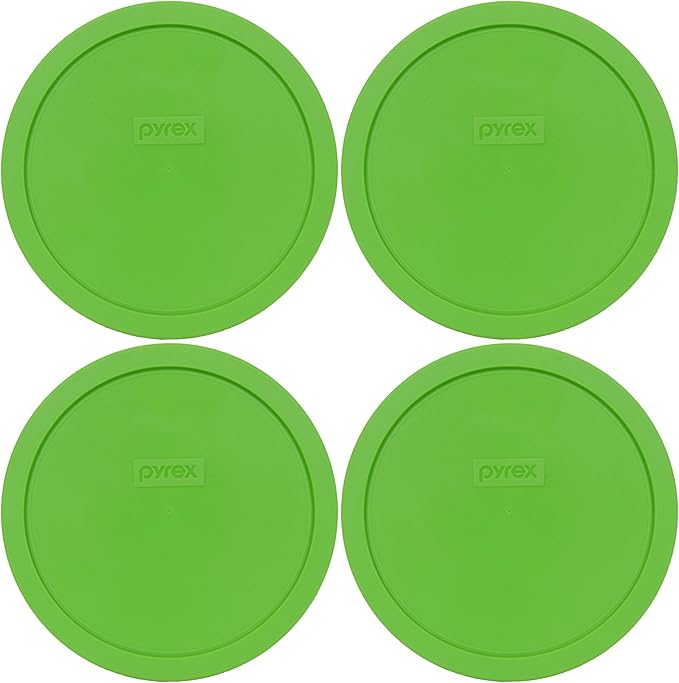 Pyrex 7402-PC Green Round 6/7 Cup Plastic Storage Lid, Made in USA - 4 Pack