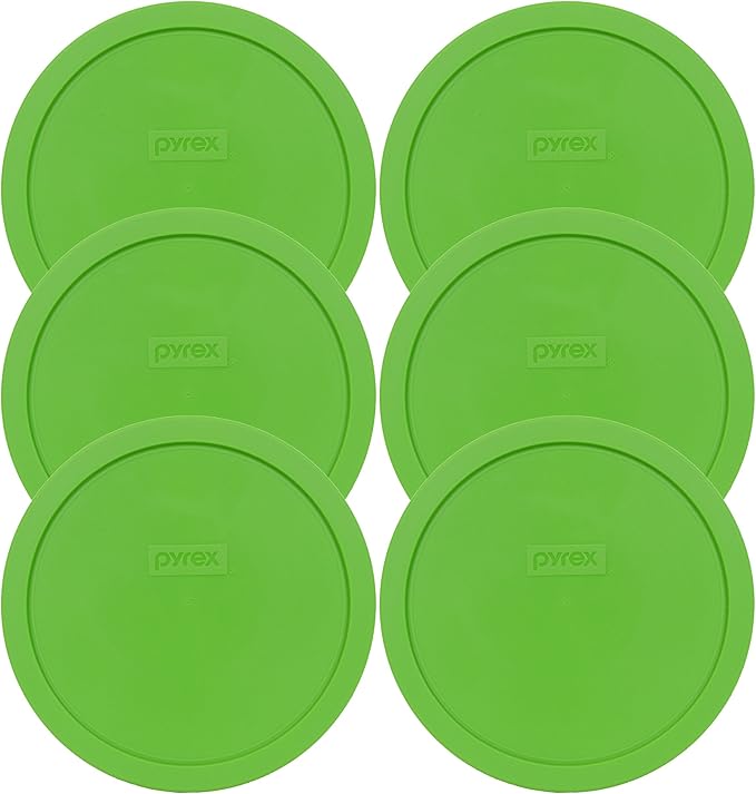 Pyrex 7402-PC Green Round 6/7 Cup Plastic Storage Lid, Made in USA - 6 Pack