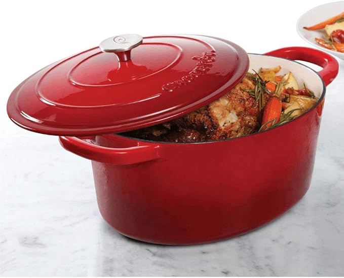 About This Crock Pot Artisan Oval Enameled Cast Iron Dutch Oven, 7-Quart, Scarlet Red w/Lid Hand wash recommended Perfect for... Read more