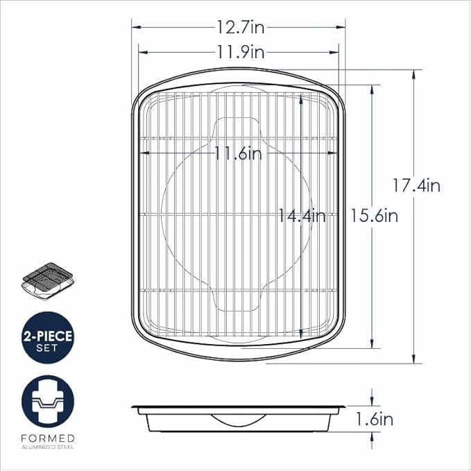 Nordic Ware Oven Crisp Baking Tray 2pc Set Includes Pan and Rack; Natural Aluminum For Air Frying, Crisping, Broiling, Baking; Cooking Surface 17 x 12 Inches