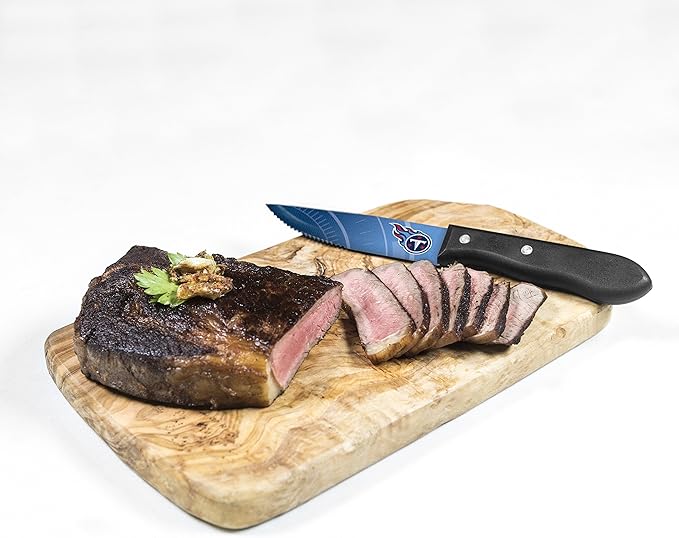 About This Includes 4 heavy-duty steakhouse quality steak knives Custom team printed artwork on both sides of knives 503 stainless... Read more