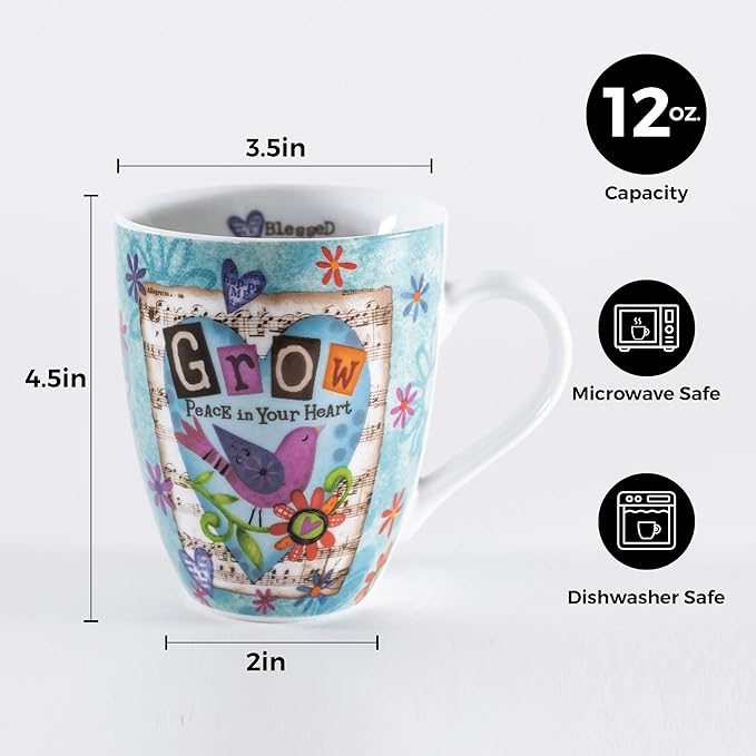 Divinity Boutique Ceramic Mug Grow Peace Bird, 12 ounce
