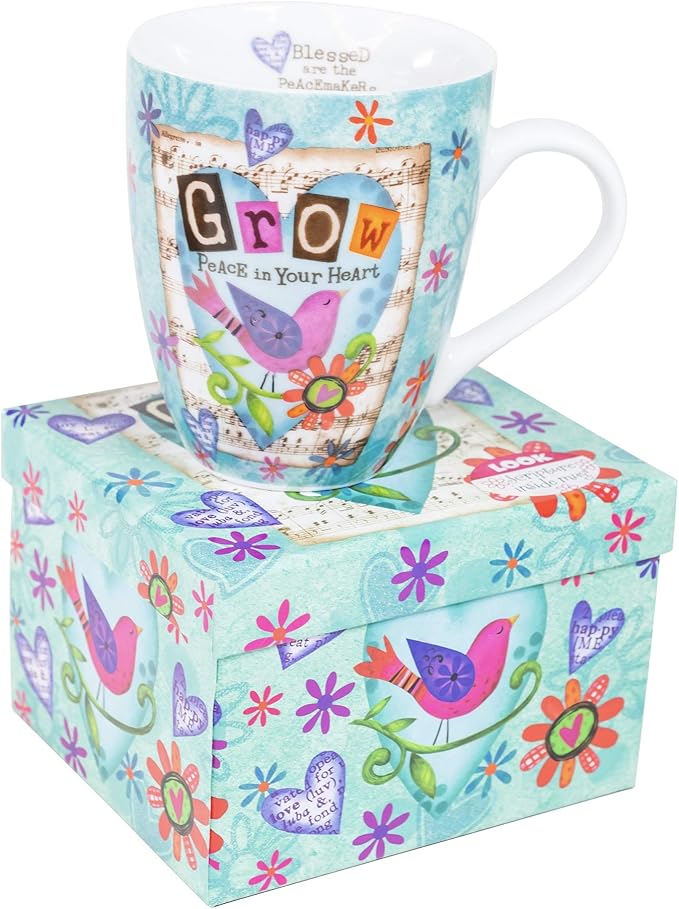 About This 12 ounce ceramic mugs with matching gift box Scripture inside each mug Dishwasher and microwave safe Grow peace... Read more