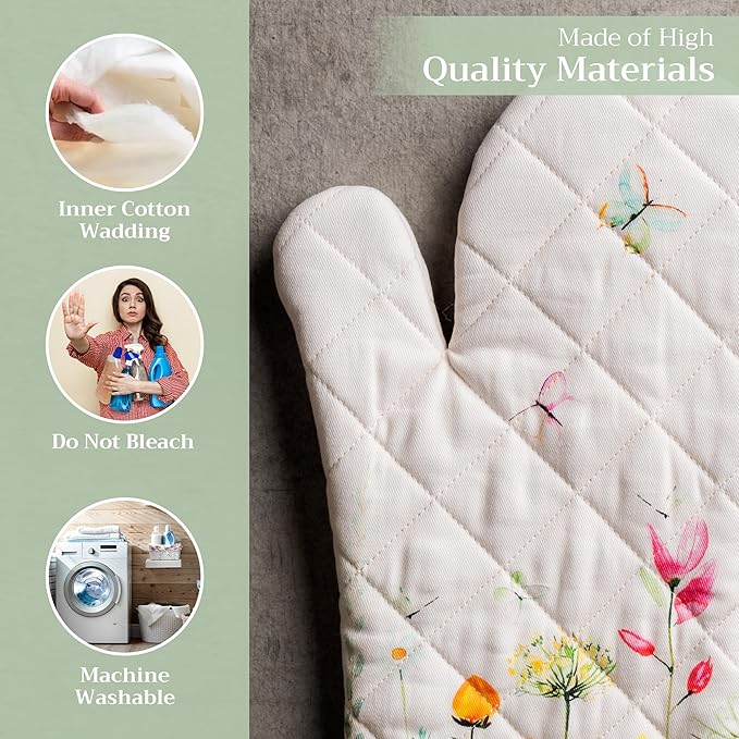 Maison d' Hermine Oven Gloves 100% Cotton Oven Mitt 7" x 13" with Loop Heat Resistant, BBQ, Cooking Gloves, Baking, Grilling, Kitchen, Handling Hot Pans Spring/Summer (Pack of 1, Botanical Fresh)