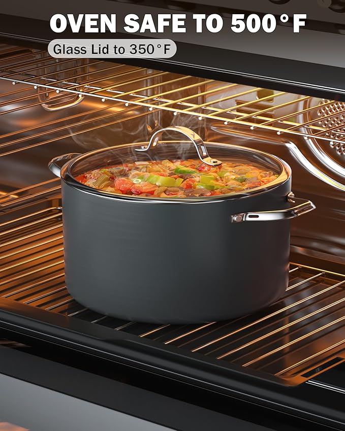 Cooks Standard Stock Pot Dutch Oven Casserole with Glass Lid, 7-Quart Classic Hard Anodized Nonstick Stockpot, Black