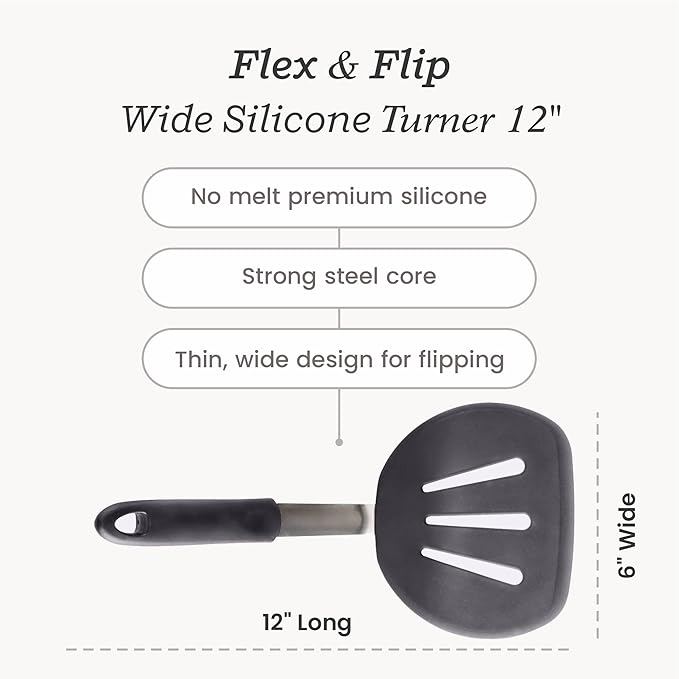 About This Flex & Flip Wide Flex Spatula Turner 12.2” x 5.9” : Easy clean and dishwasher safe, for increased... Read more